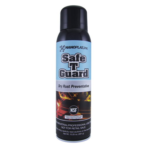Los químicos Safe-T-Guard proveen protección para su máquina y no permitirá que penetre la corrosión. Las propiedades de protección proveen una resistencia de película excelente, y ya que se aplica en seco, no cortará la grasa u otros lubricantes que ya estén en la superficie. También trabaja como un buen lubricante para partes móviles de la máquina y está listado por la NSF H-1.